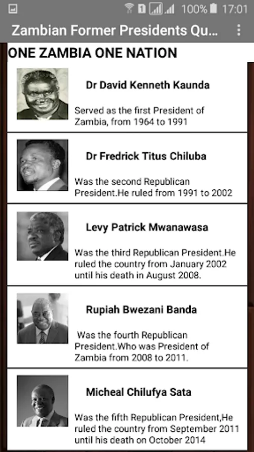The History and Quotes of Former Zambian Presidents,Dr Kenneth Kaunda the first President,Dr Frederick Chiluba,Levy Mwanawasa,Rupiah Banda and Michael Sata.