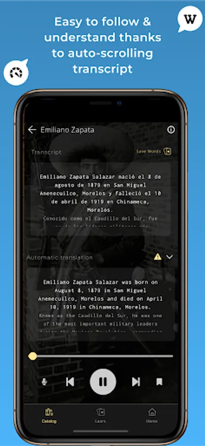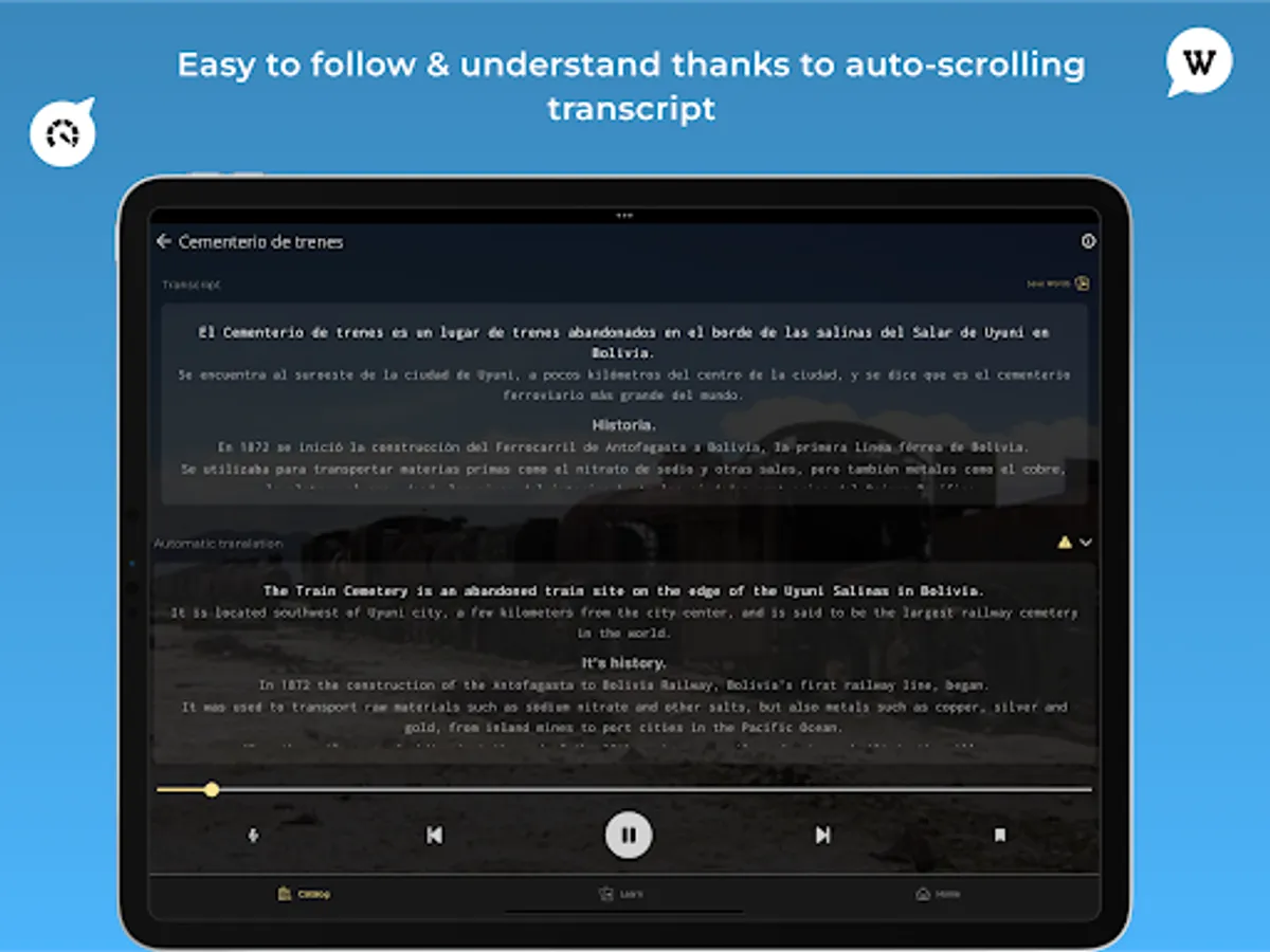 Lwingo is the best app to practice Languages while listening to Wikipedia podcasts about your favorite topics: