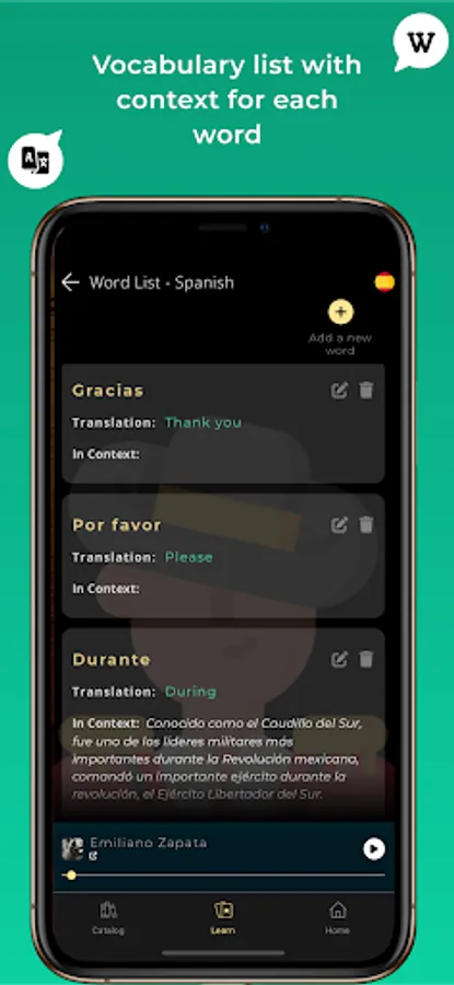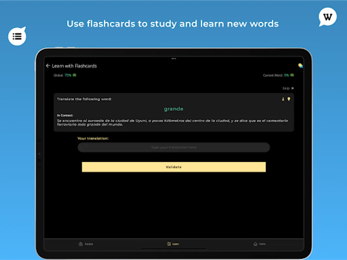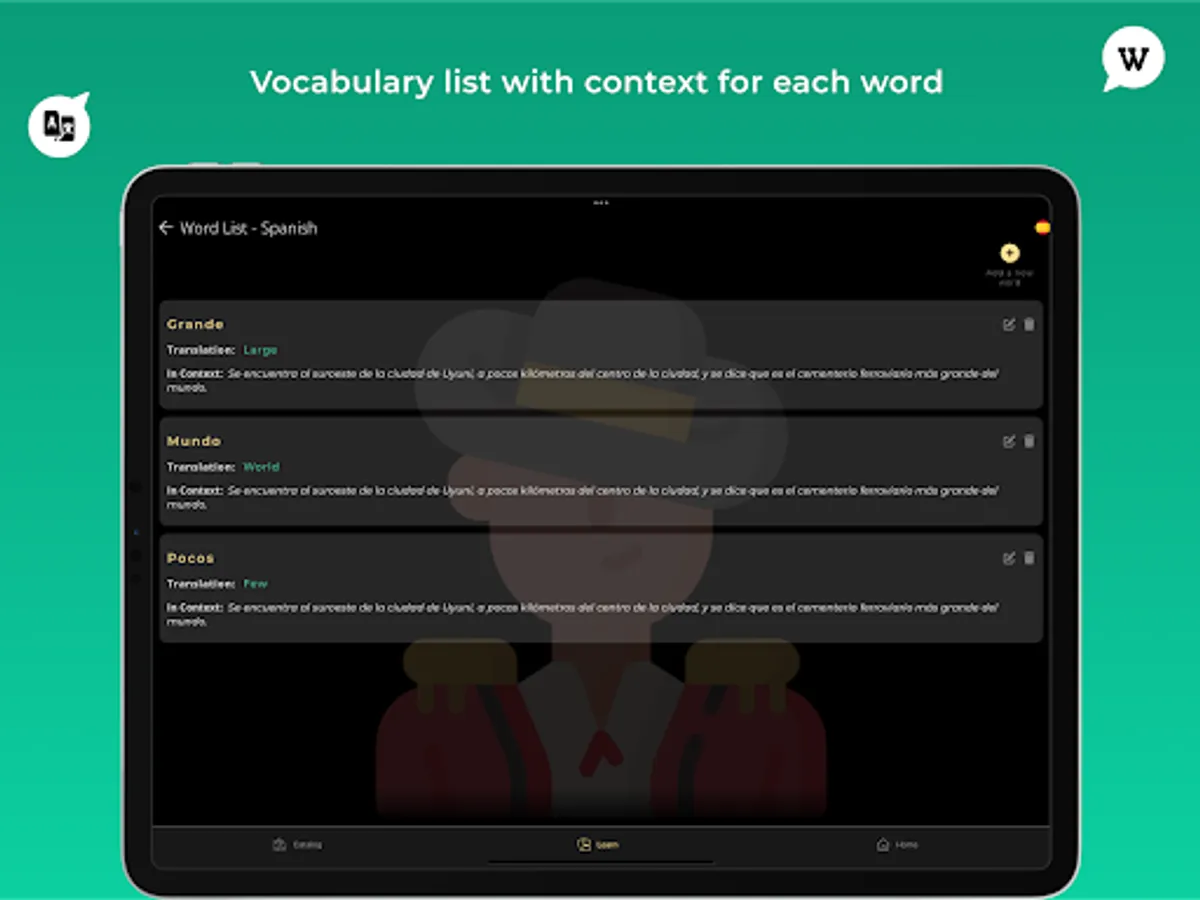 - Translation in your language is always available, to help learn new words and enrich your vocabulary