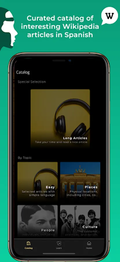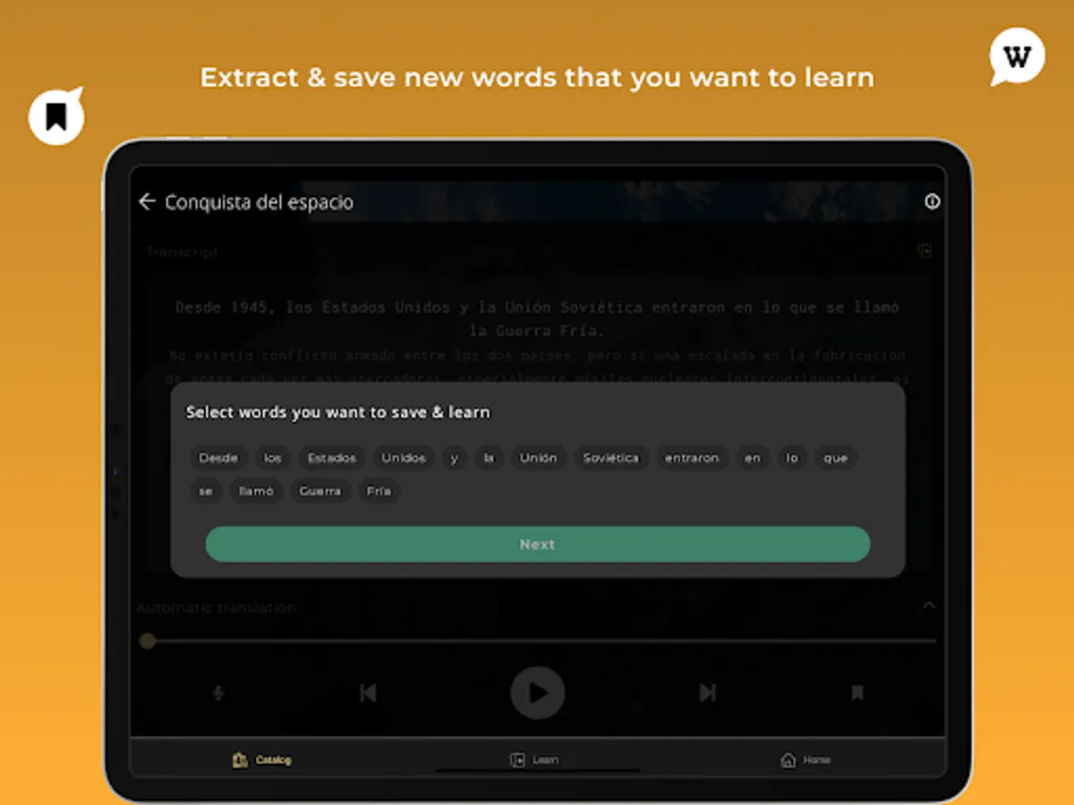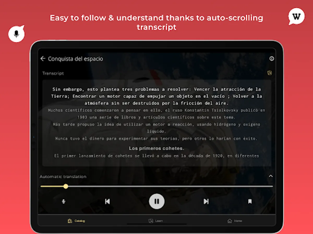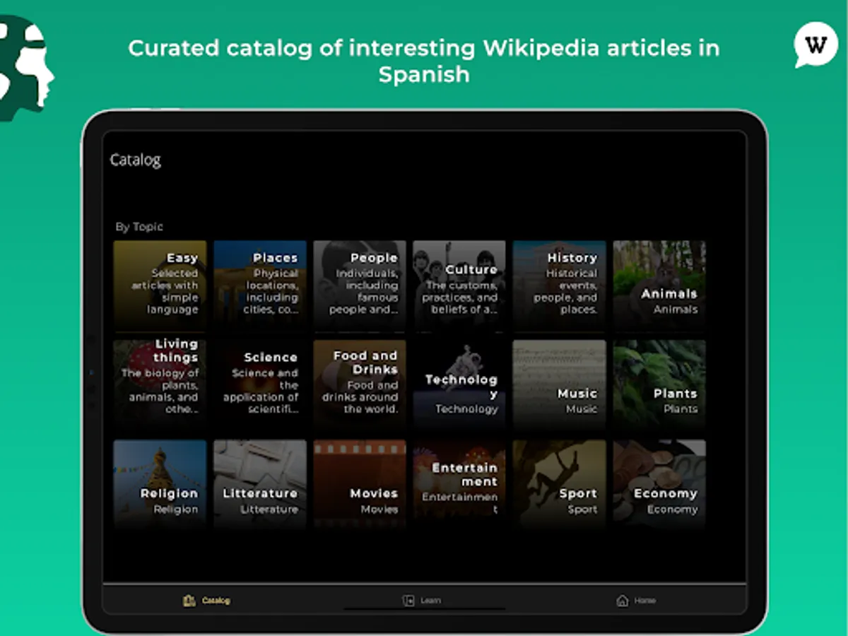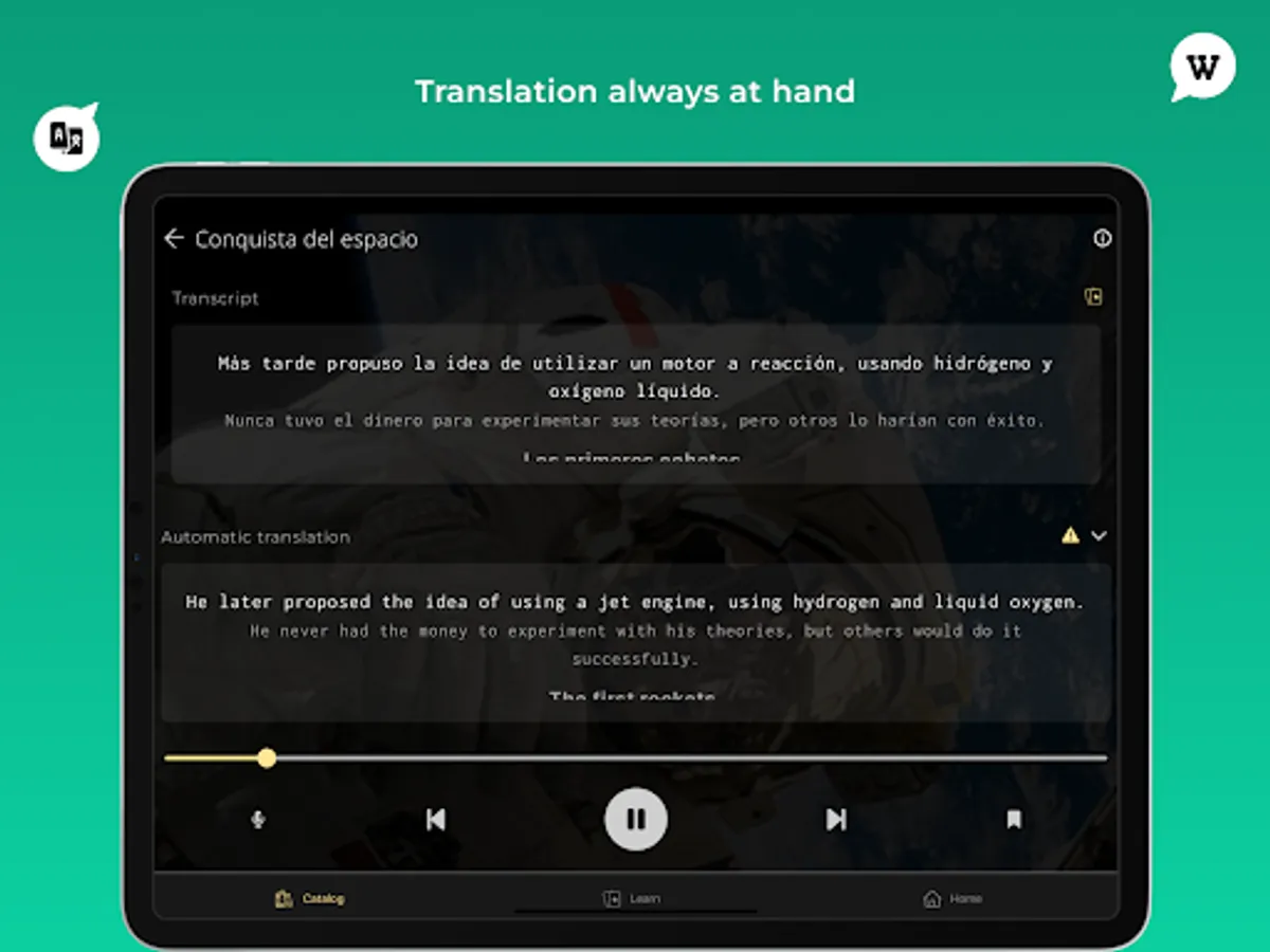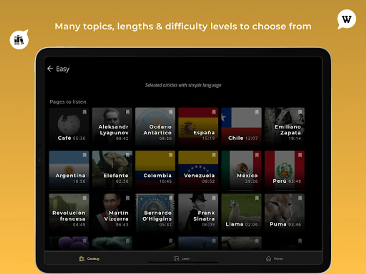 Lwingo is the best app to practice Spanish while listening to Wikipedia podcasts about your favorite topics: