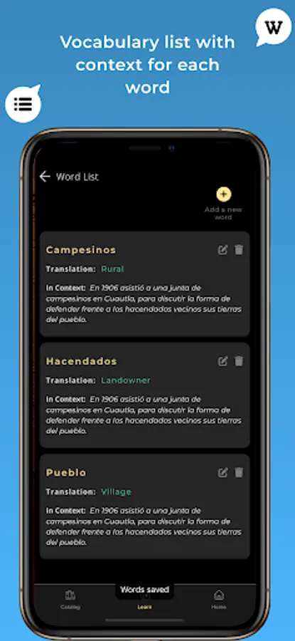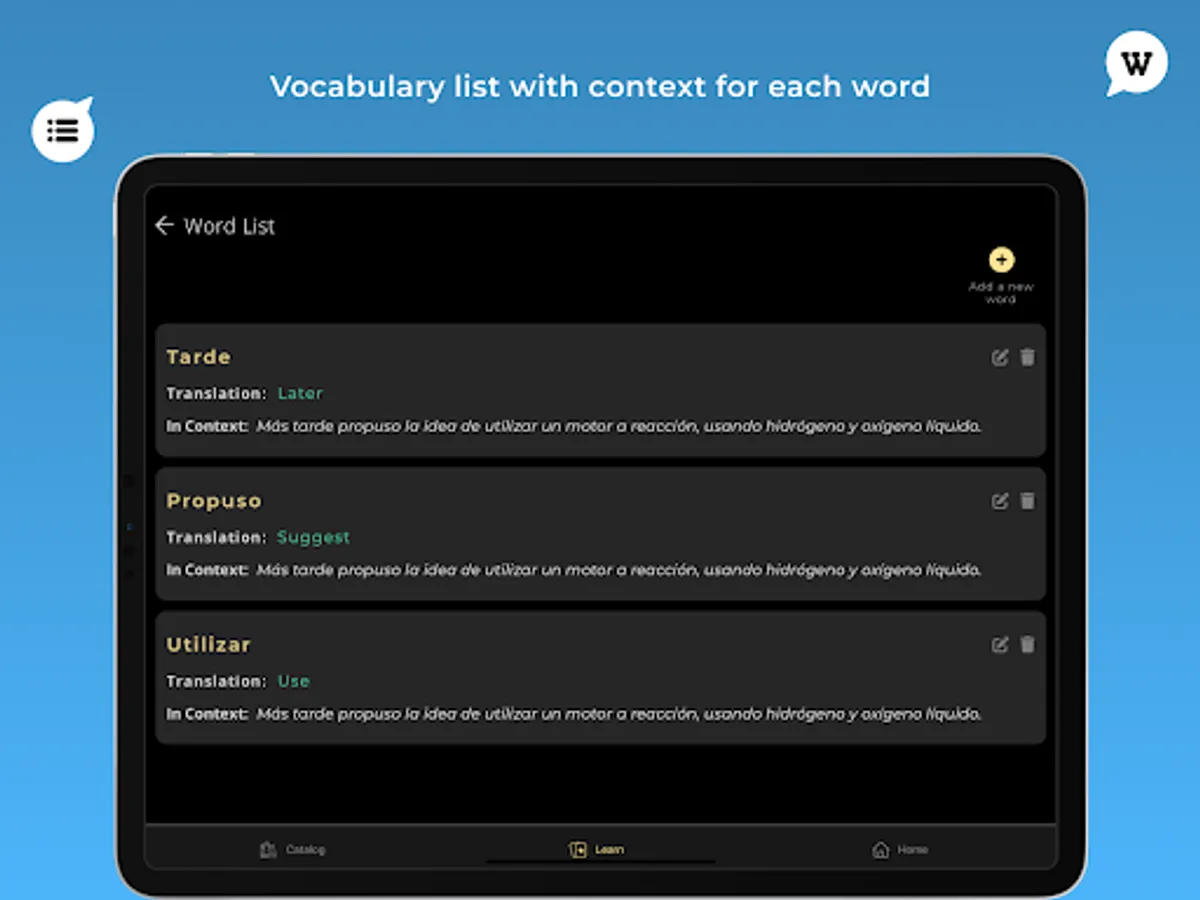 - Translation in your language is always available, to help learn new words and enrich your vocabulary