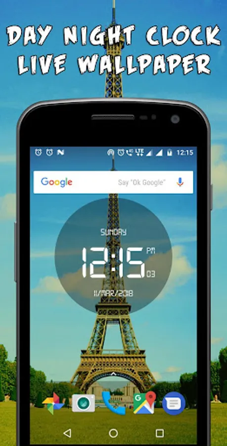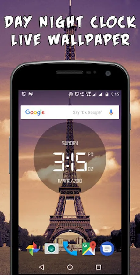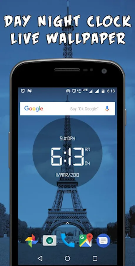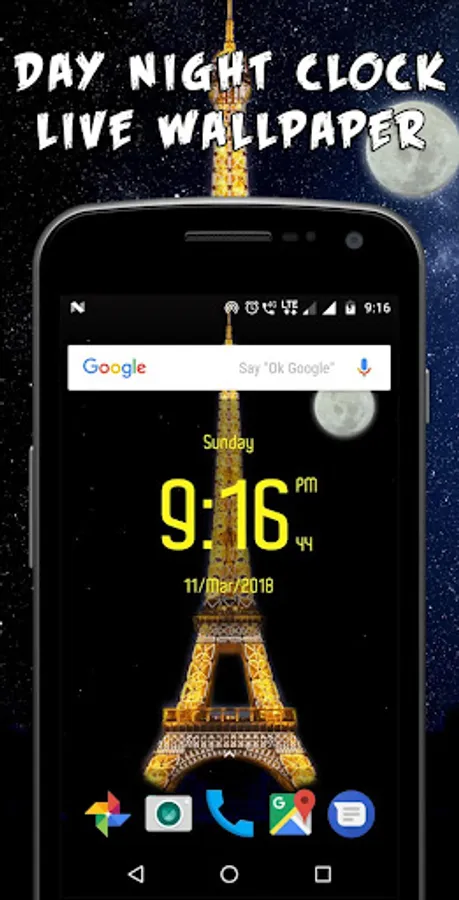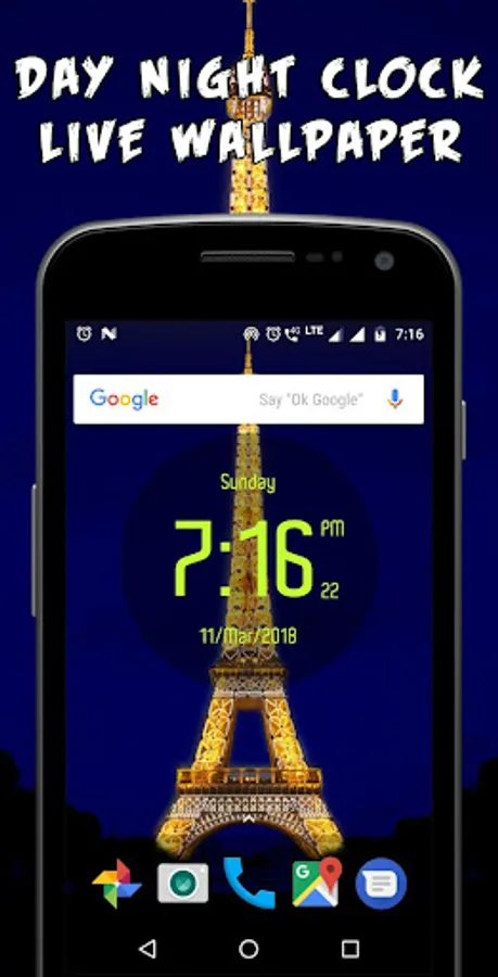 Day night automatic LED Digital Clock Live Wallpaper have one eiffel tower theme with six atmospheres which is change as per time automatically. This is the real time live wallpaper.
