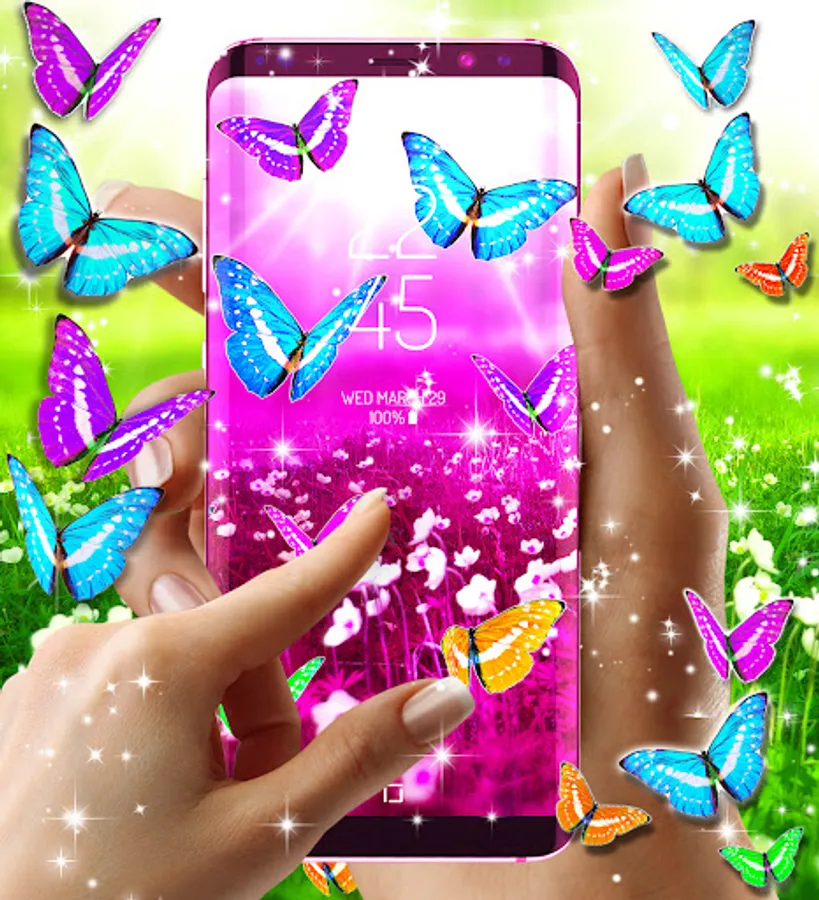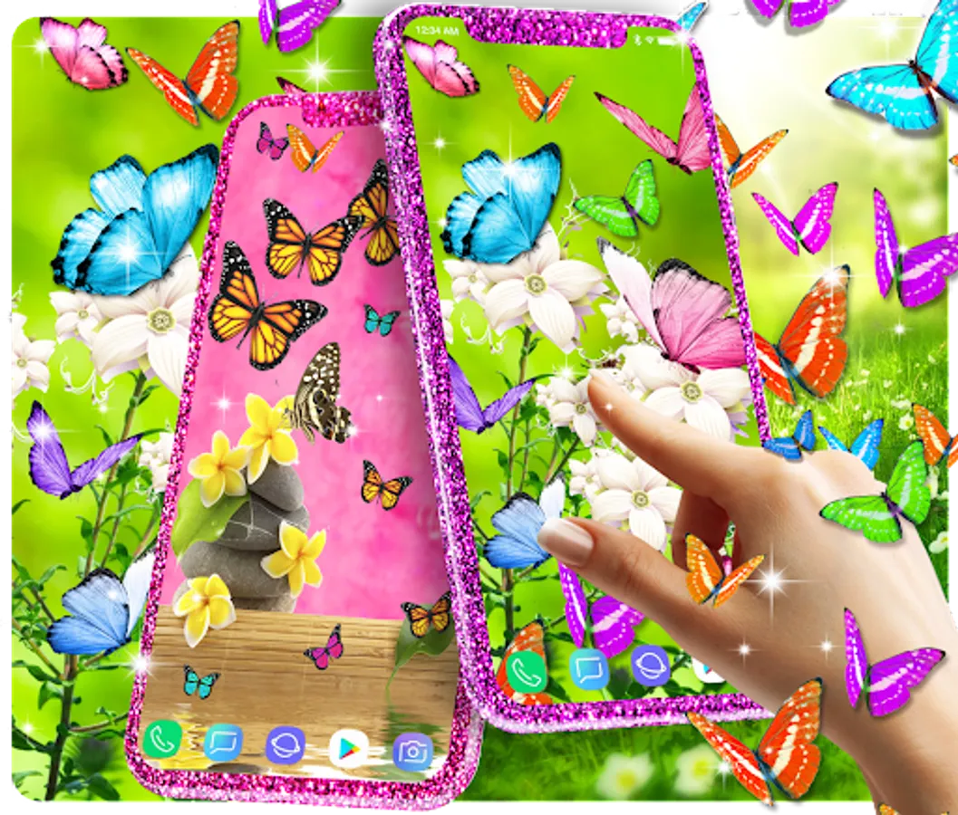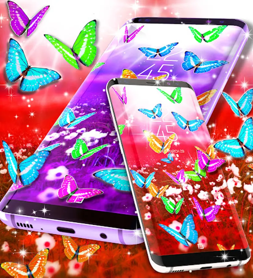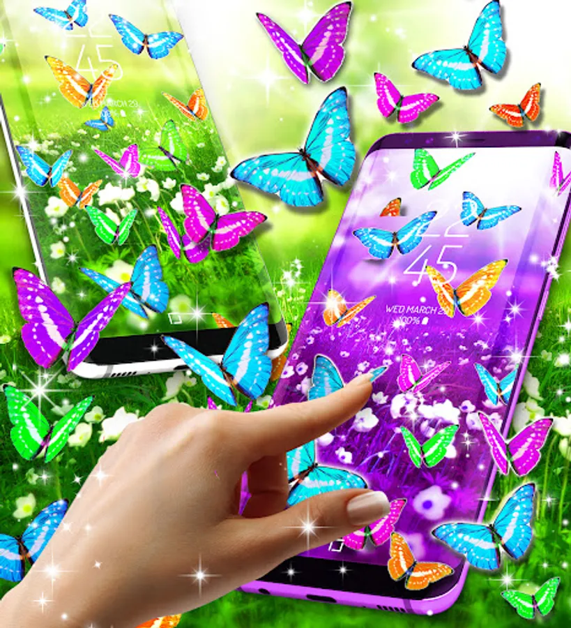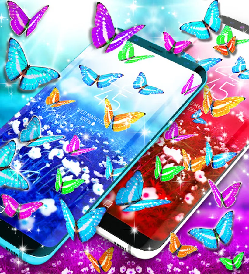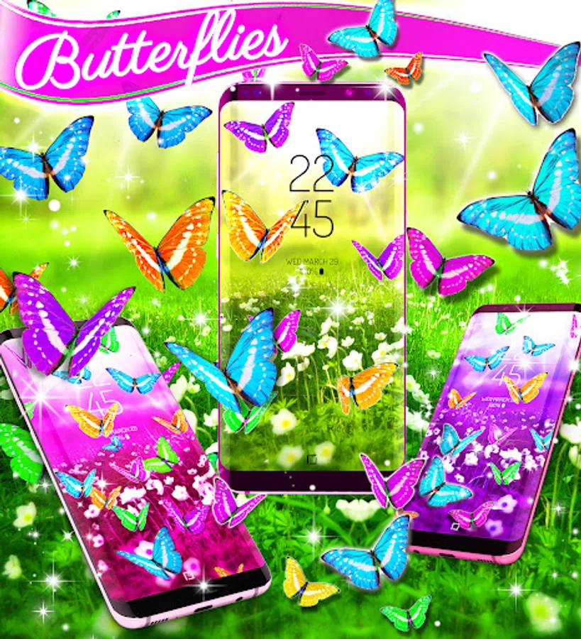 The wallpapers in this fantasy world represents a green field where all the beautiful plants grow. Our colored butterflies found their home in this splendid view and they became friends and so the story of the live wallpaper begins. All the butterflies are 3D and they look beautiful on every android phone screen. You will find different colors of butterflies like pink, blue or orange as animation and 30 hd static butterflies backgrounds.