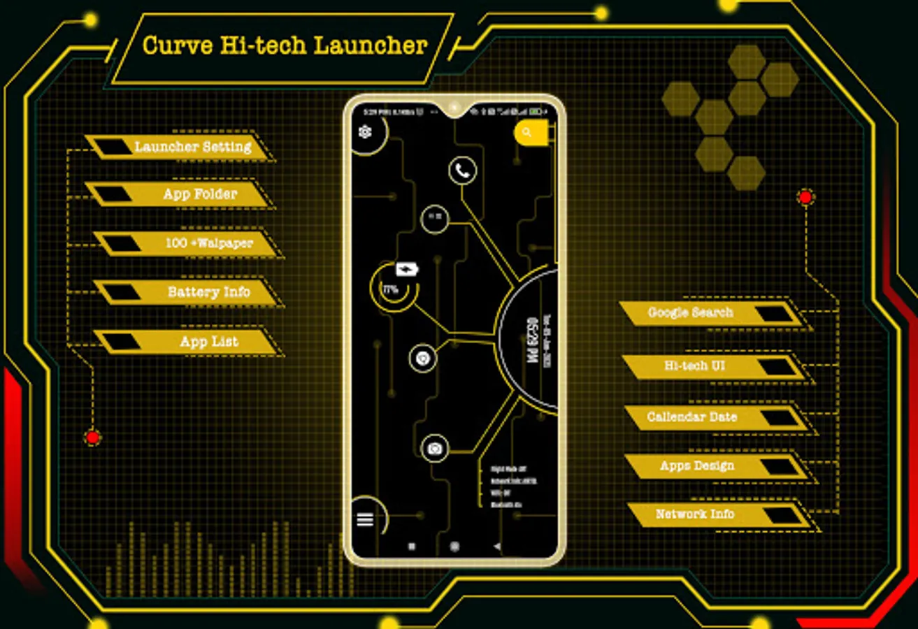 Curve Hitech launcher is a fast and easy-to-use launcher for Android, designed with a future UI or next-generation UI style, with its extensive customization options. This app turns your Android phone into a futuristic launcher. It lets you say goodbye to outdated launchers and welcome the new and improved Inventive Launcher - AppLock, HideApp, Hitech Wallpaper, Folder, and Themes. With this app.