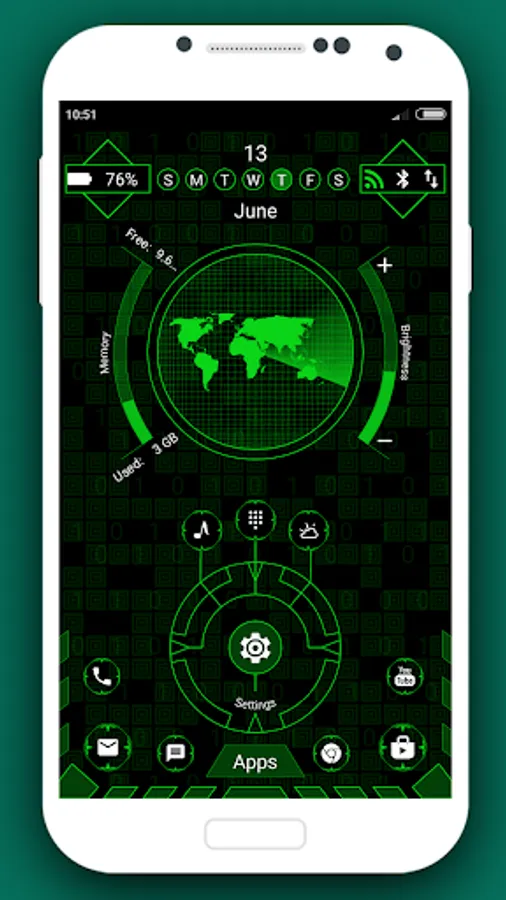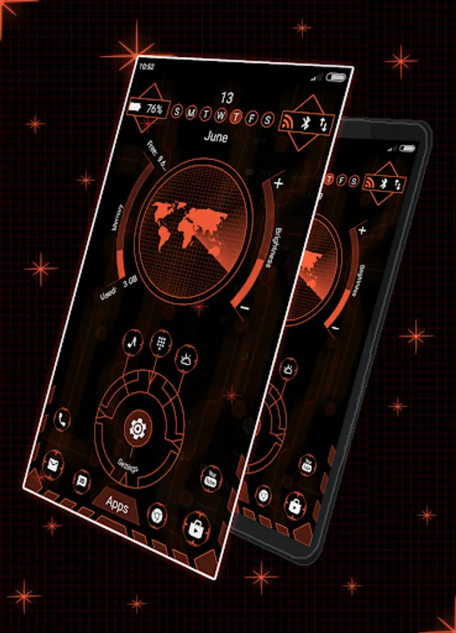 Enjoy the Hi-tech wallpaper feature that adapts its color to match your chosen theme. You can also adjust the brightness of the wallpaper or apply your own images from the gallery.