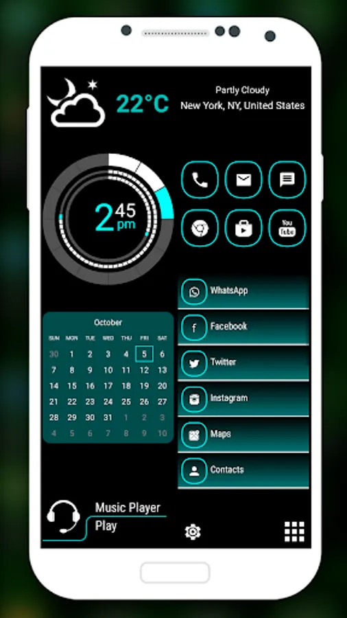 Elegant Launcher Pro 2 - provide live weather broadcast and music player on your more screen.