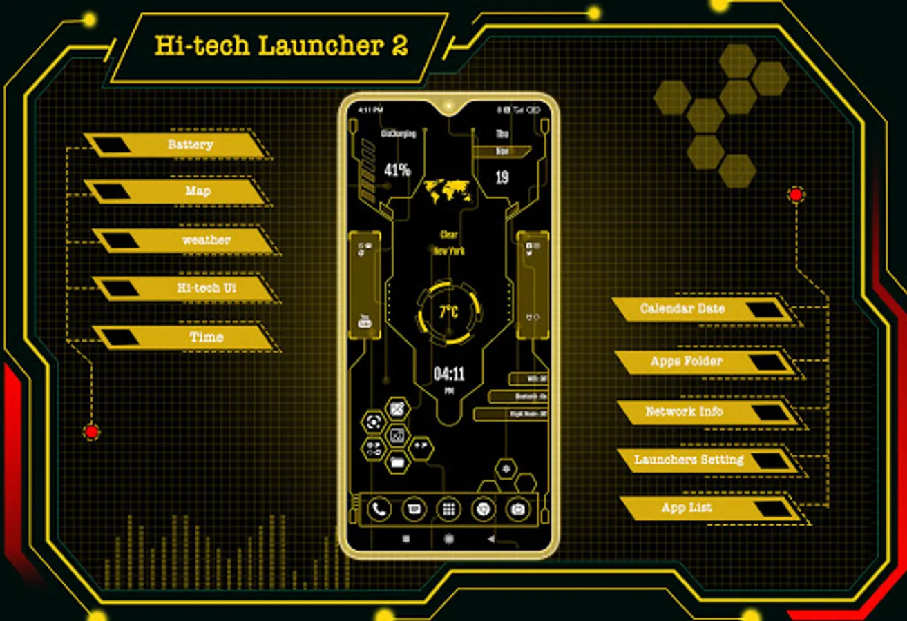Hi-tech Launcher 2 is a fast and easy-to-use launcher for Android, designed with a future UI or next-generation UI style, with its extensive customization options. This app turns your Android phone into a futuristic launcher. It lets you say goodbye to outdated launchers and welcome the new and improved Inventive Launcher - AppLock, HideApp, Hitech Wallpaper, Folder, and Themes. With this app.