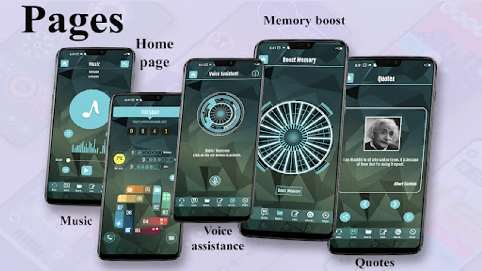 Clock, weather information, memory analyzer, music player, voice assistance, phone widgets and battery widget is available in thislauncher .
