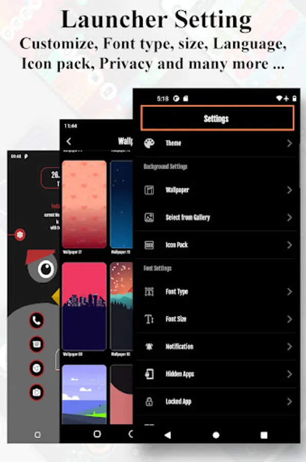 Almost 200+ vector wallpaer, designed with lot of passion and experties. This launcher has 40 themes but still it is very compact in size only 4.5 mb in size. Its very light weight and runs soomth in your phone.