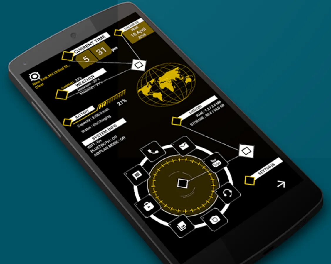 Enjoy the Hi-tech wallpaper feature that adapts its color to match your chosen theme. You can also adjust the brightness of the wallpaper or apply your own images from the gallery.