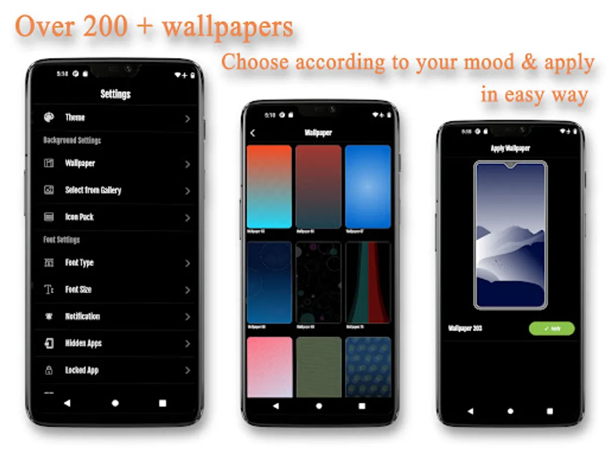 Almost 200+ vector wallpaer, designed with lot of passion and experties. This launcher has 53 themes but still it is very compact in size only 4.5 mb in size. Its very light weight and runs soomth in your phone.