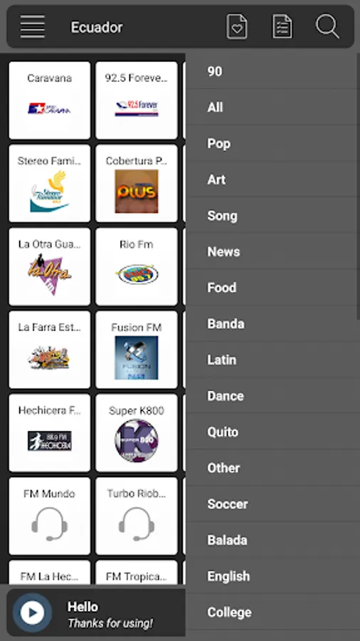 Ecuador Radio incluye todas las estaciones de radio de Ecuador para una escucha más rápida y fácil y de forma gratuita. Con Algeria Radio puede disfrutar rápidamente de sus radios favoritas por varias categorías en un clic, reproducción instantánea y calidad premium. No se necesitan auriculares, solo conexión de red.