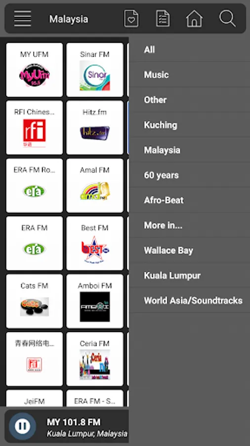 Radio FM Malaysia app brings to you for free, the opportunity to enjoy listening to online radio broadcasts and music on your android, no matter where you are.