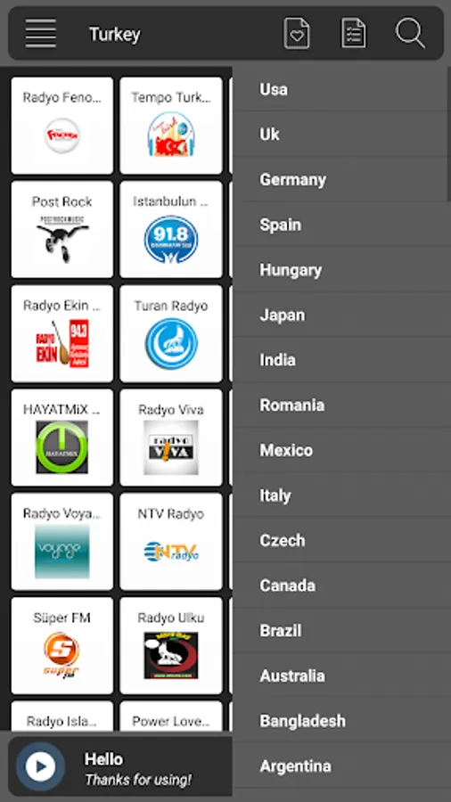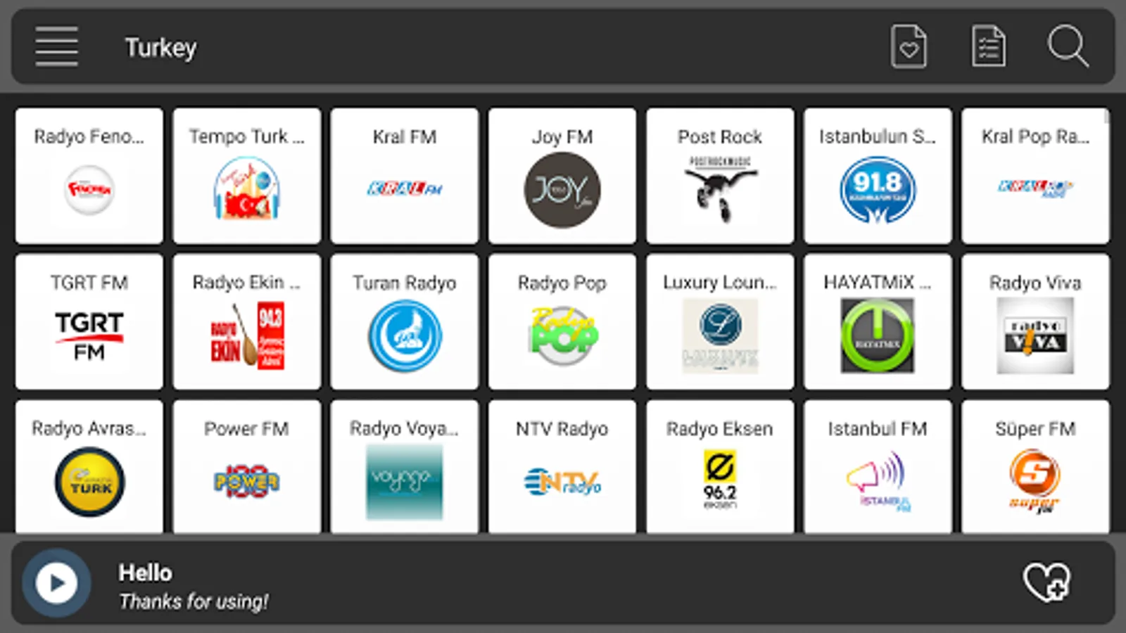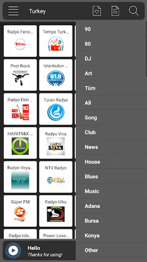 Radio Turkey is the radio application that everyone expects, light and fast.