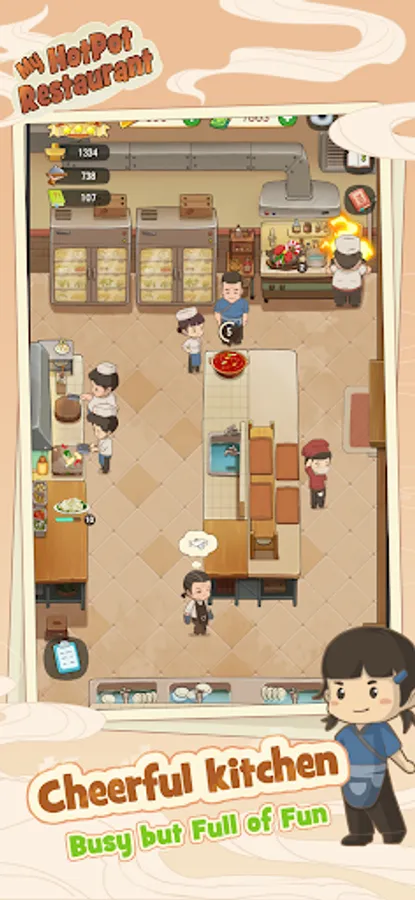 In this game you will play the role of a hot pot restaurant owner, developing various hot pot dishes, making daily purchase plans, serving customers, training chefs and waiters, purchasing restaurant stuffs, opening a chain of stores, etc.