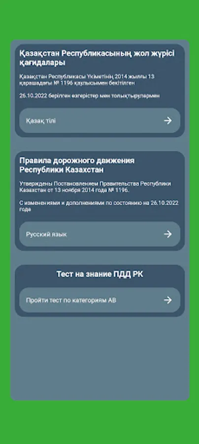 The application "Exam of traffic rules and fines of the Republic of Kazakhstan for 2023" will help you find out the current traffic rules and fines for violations in force for 2023. You can see a detailed description of the rules for drivers and pedestrians, as well as find out the amount of fines for various violations.