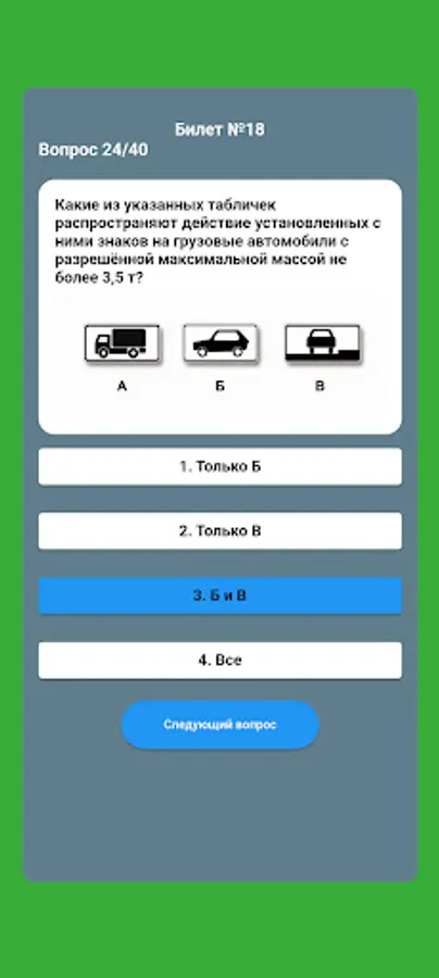 The application contains detailed information about signs, road markings and traffic controller gestures.