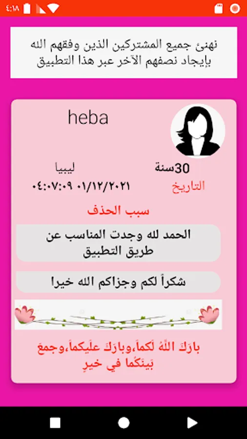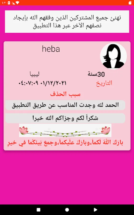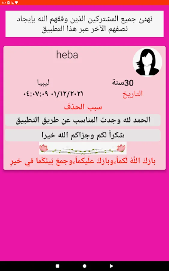 The application of "Marriage of Girls and Divorced Libya" is distinguished from other online marriage applications in that it takes care of the smallest details that care about your privacy and finds you the right person in a smart way to make its use a safe and reliable experience, and it is also based on compatibility, which means that its customized results are compatible between you and the potential future partner