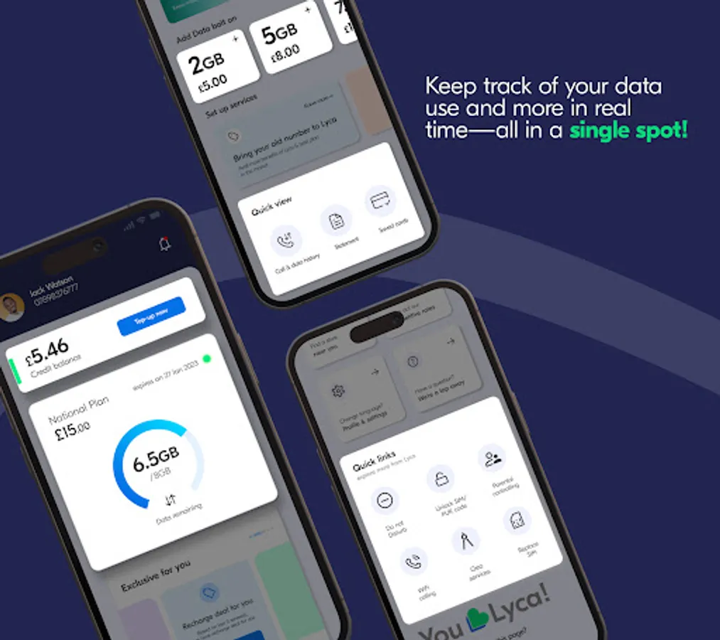 • The Lyca Mobile app is free, but any data used to access features will be taken from your monthly allowance or credit.