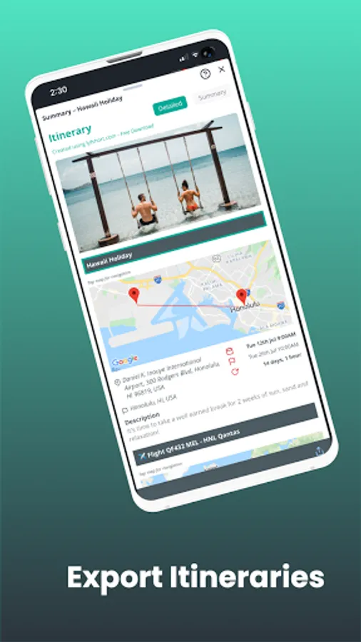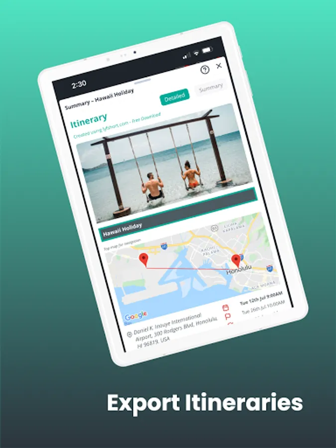 Send read only details of your itinerary to people that may not be participating in the activity as an attachment.