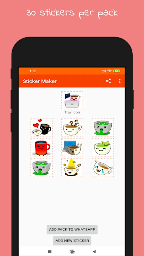 WAStickerApps can create up to 10 sticker packs and each sticker pack can have up to 30 stickers.