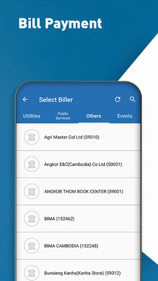 * Bill Pay (Utility, Public service, Donations and others)