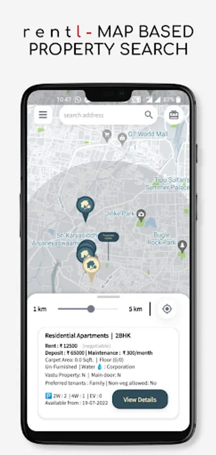 3. With "rentl" you can easily Search and precisely locate house rentals with routes and distance.