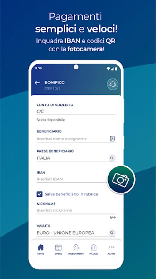 And, you can forget about manually entering the data but take advantage of your smartphone's camera to acquire the order code or IBAN or use your voice to write the reason for payment.
