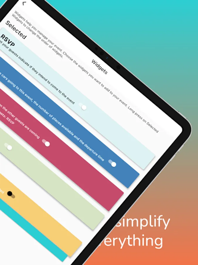 Thanks to its intuitive and customizable interface, you can make your event unique and easy to use for everyone. Whatever the event, you will have a widget to simplify its organization. No need to create an account, with your link, users can directly access the event and it is always at their fingertips.