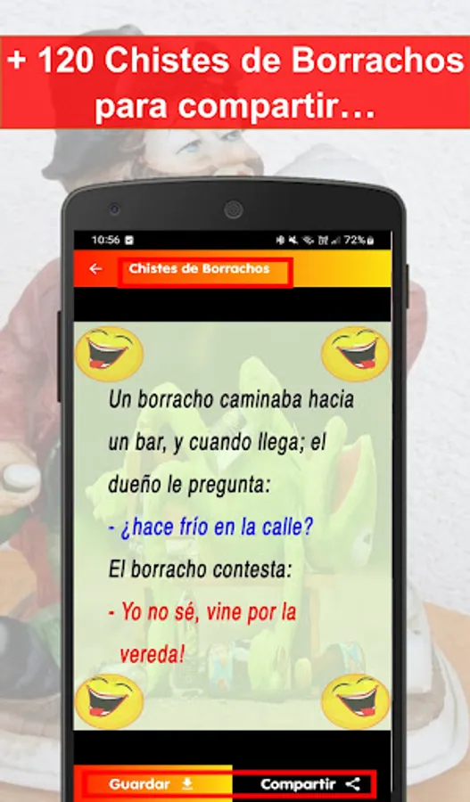 * This app. It is designed for all types of audiences, of all ages, for all Spanish-speaking people, without distinction, you will only find Drunk Jokes on good terms, Funny Jokes, just enjoy it.