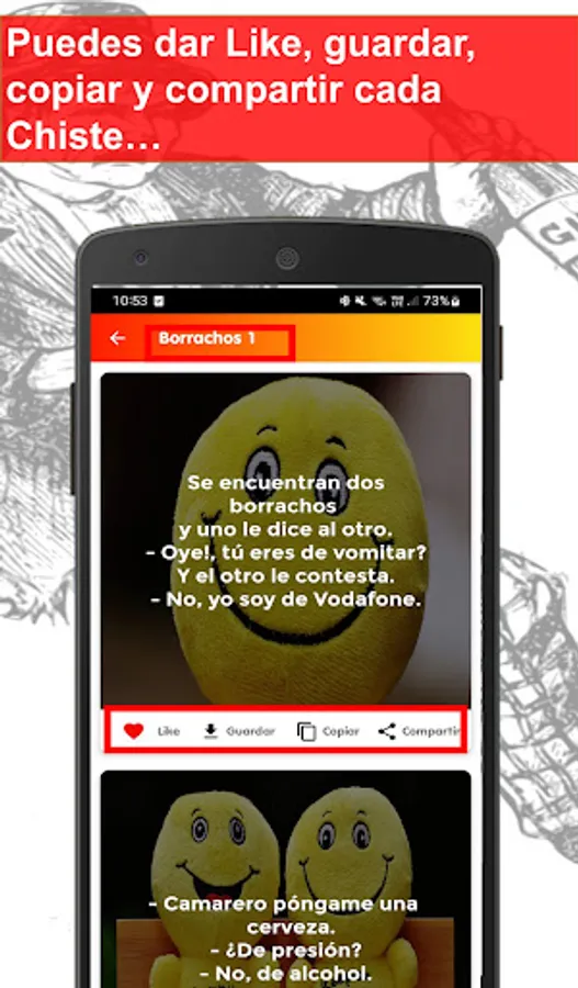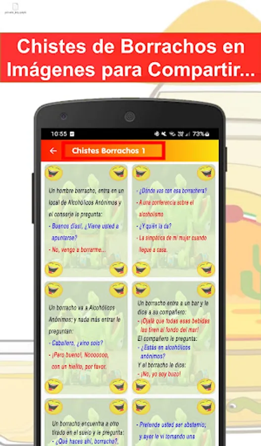 I invite you to download this application today and start enjoying each of the Drunk Jokes, that you also enjoy being the center of attraction in your relaxation and fun meetings that you have within your social circle.