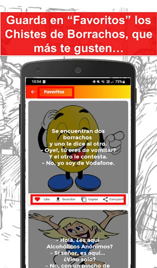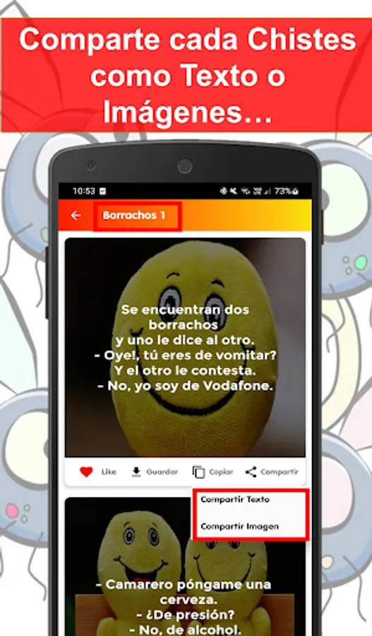 If what you are looking for is a funny jokes app that gives you moments of relaxation and fun, which also allows you to share it directly with your friends and family; and that you can share every joke, then Drunk Jokes is the right one.
