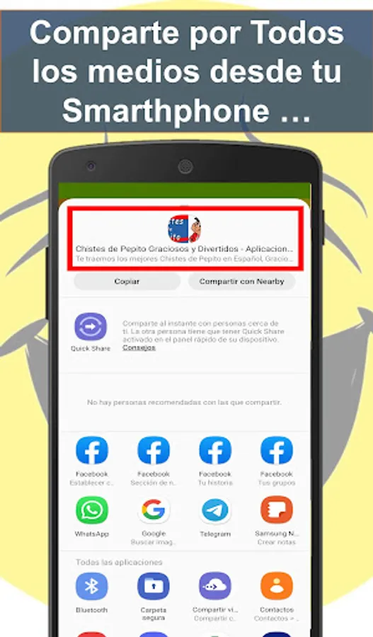 😁 You have the option to share the Chistes de Pepito app, directly, through a feature included in this application.