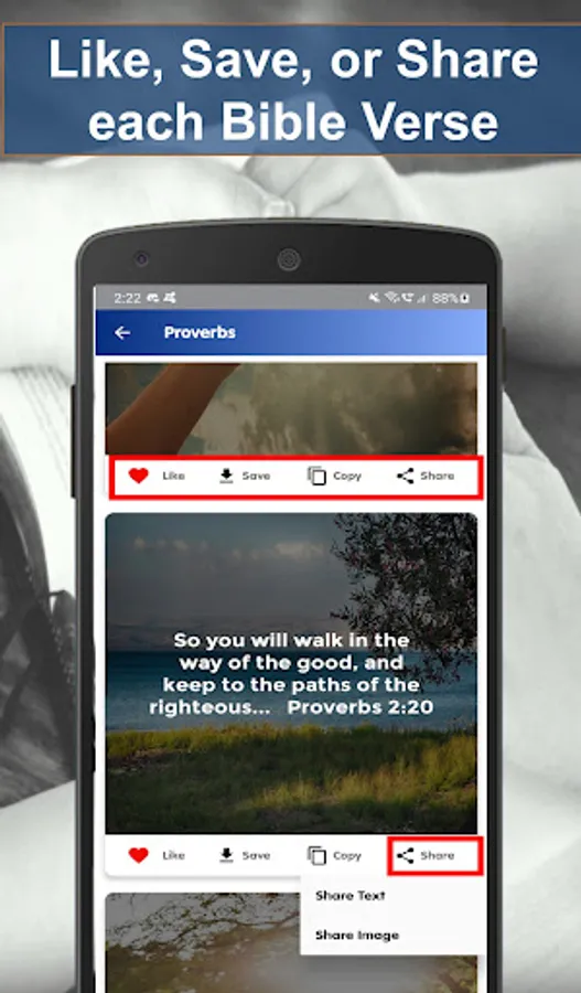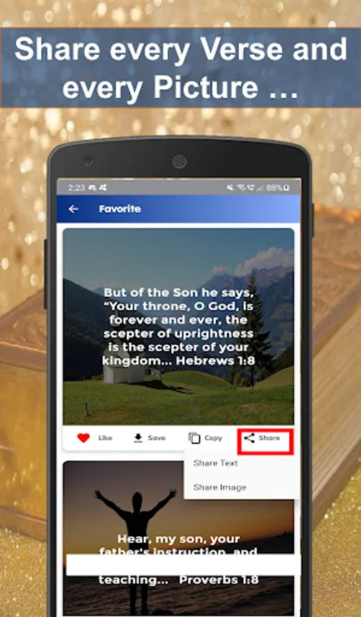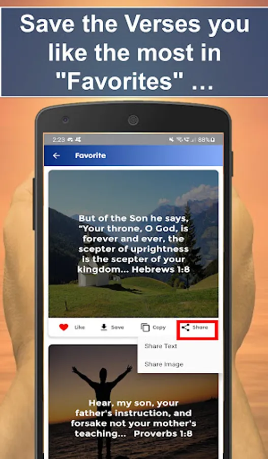 Save and share your favorite Daily Bible Verse into your "favorites".