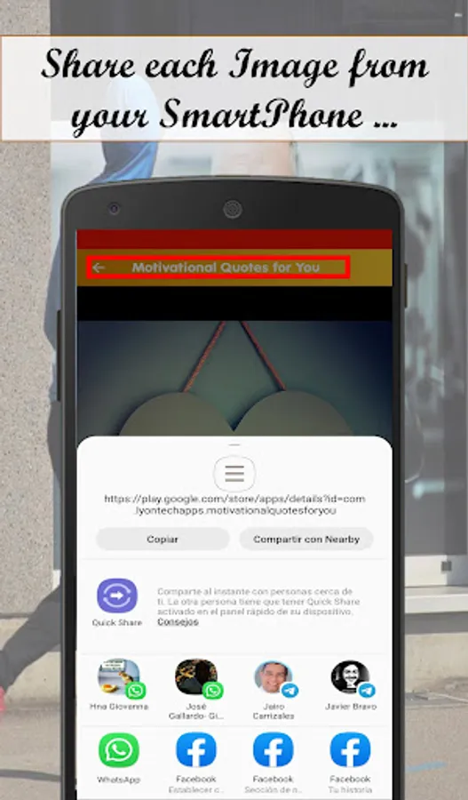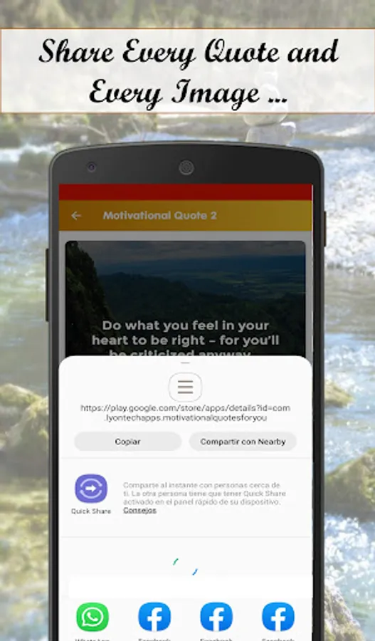 WhatsApp and Email. You will also find other functions that you They will allow to share this application of Motivation and Success Quotes through WhatsApp and Email.