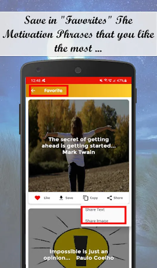 We will frequently update and add new Motivation and Success Quotes to our application. For now, we invite you to enjoy its content and to share it with
