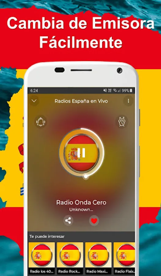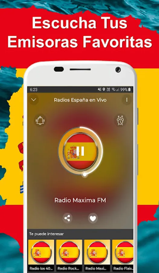 3. Choose the Radio Station of Spain, of your preference, and feel the Live Music.