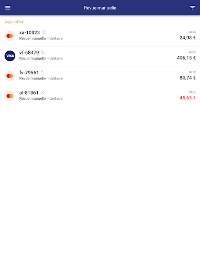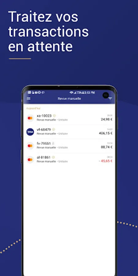 • Manual review: Ability to validate or cancel pending transactions