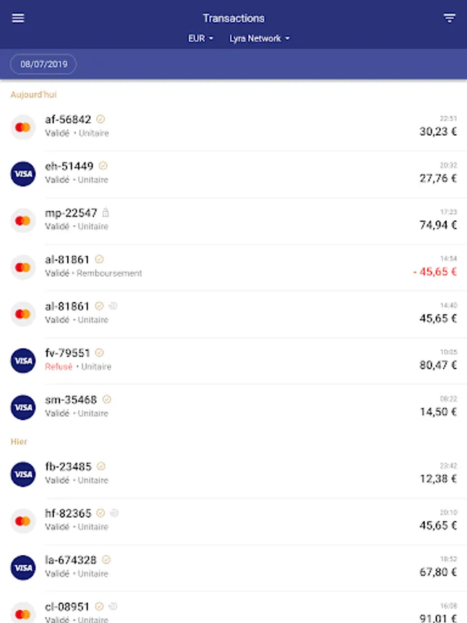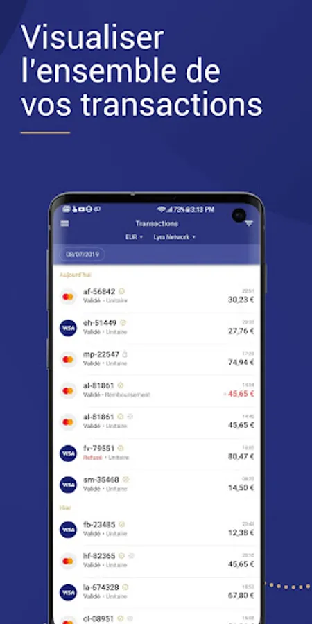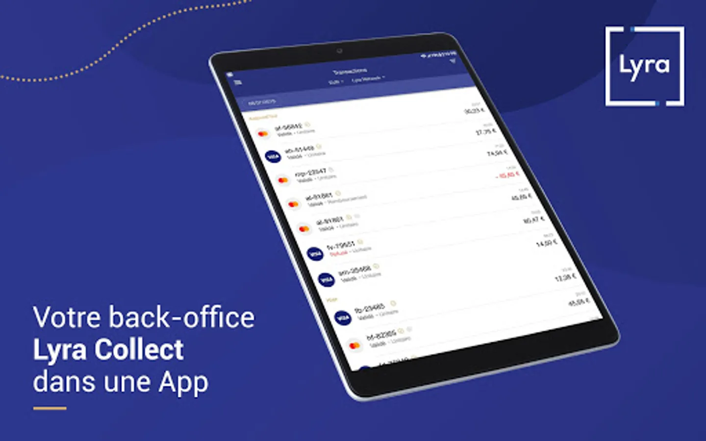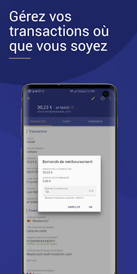 This user-friendly mobile application contains all the Lyra Collect Back Office features allowing you to easily manage your e-commerce payments: