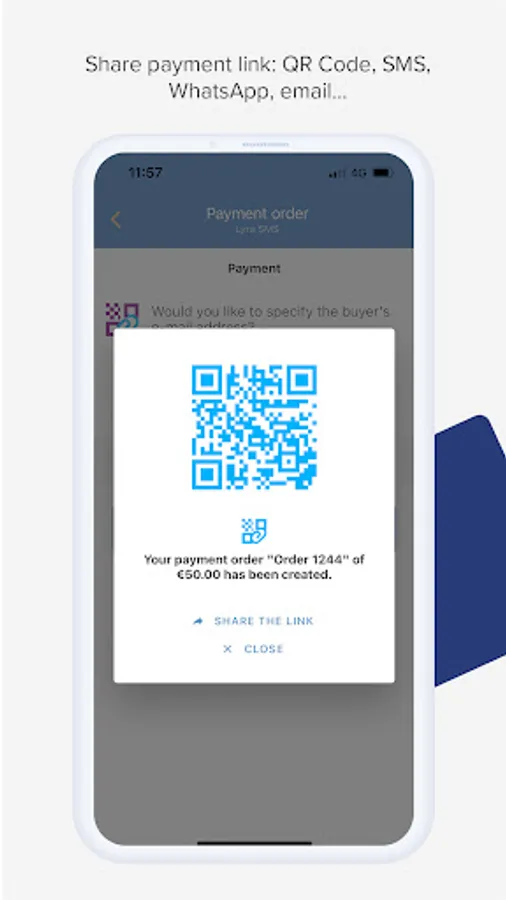 2. Share it with your customer through a QR code or send it by SMS, WhatsApp, email or your favorite channel.