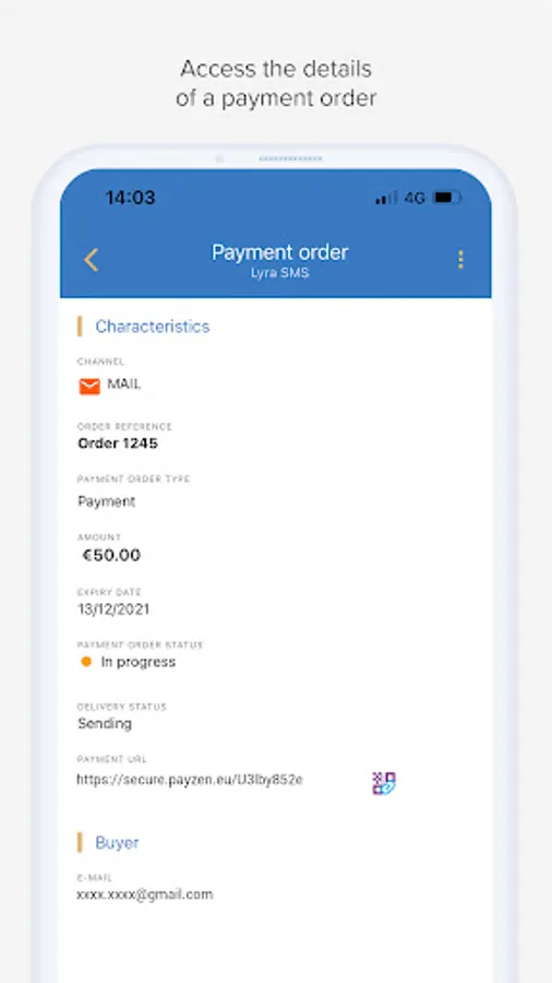 1. With the Payzen by Lyra application, create a payment link