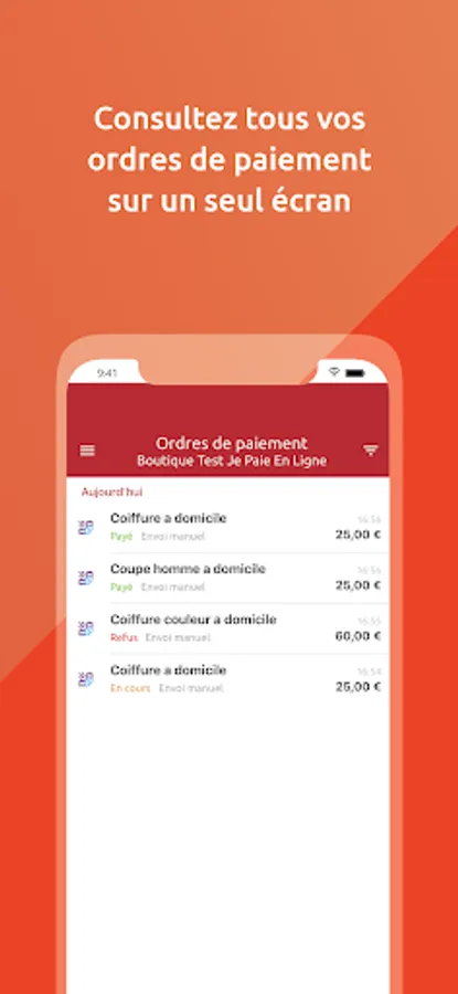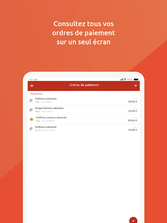 Follow the collection status of your card payment orders (pending, accepted or refused), find your transaction history and filter them by reference/name, date, price, etc.