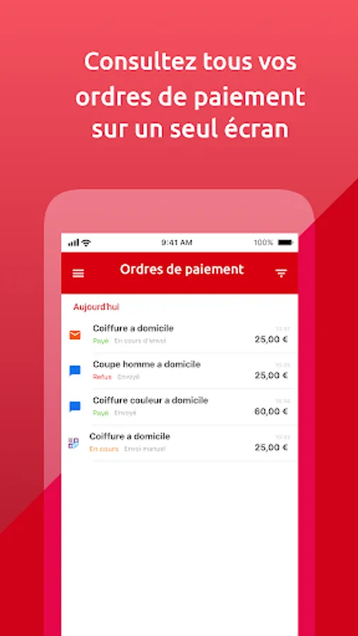 Follow the collection status of your card payment orders (pending, accepted or refused), find your transaction history and filter them by reference/name, date, price, etc.