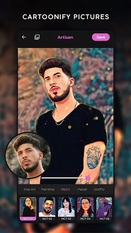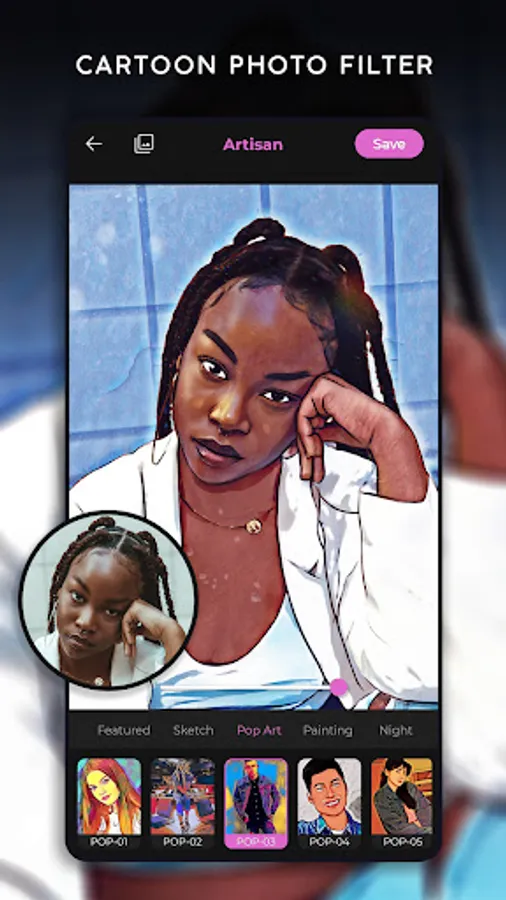 Artisan cartoon photo editor is the best toon app to cartoon yourself and to make digital art with many artistic photo filters. Artisan cartoon maker comes up with many vector art filters and caricature effects to cartoonify and avatarify photos just in one tap. Anime photo editor takes your pics art experience to the next level with the aesthetic vector portrait templates which can cartoonify and create hand-drawn caricatures easily. Make anime art by converting pictures into paintings and comics now! Artisan cartoon photo editor is an all-in-one photo editing app, comes up with breathtaking selfie camera effects to edit pictures, avatarify yourself and make art with various art filters. Prepare artwork for Instagram, Facebook, Whatsapp, and Pinterest. You'll have awesome caricatures for Snapchat, TikTok, or for VK!