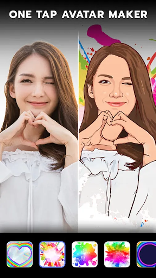 ToonApp picture editor automatically removes background! Remarkable toonify backgrounds take your pics art to the next level. Avatarify and cartoonize your image to create a cute new profile pic! Toon me like a pro with ai art photo lab and voila!