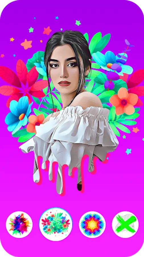 Super neon dripping effects in surprising styles and colors make your images artistic! They all are provided by stunning DripArt! Amazing Drip Art Photo Editor has features like background changer and background editor for change background with different drip styles! Customize your cool photo by changing the size and color of staggering drip art effect! There are loads of aesthetic dripping effects to explore! You can also personalize background; you can leave it completely white, transparent or add your fav profile pic wallpaper! Combine the breathtaking dripping fx with other editing apps tools such as motion or neon spirals!