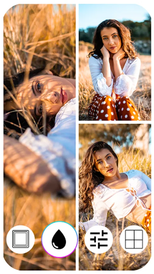 Collage photos in one special post with the photo collage maker, pick a photo grid and try the amazing edit photo layout templates. DripArt photo editor takes your profile pics art to the next level! With the drip art effects, pic editing tools and neon spirals by DripArt! Collage maker of DripArt provides free templates in different shapes and grids to improve your collage! Take a new profile photo in shot with aesthetic vintage and retro filters and create a photo collage! Express yourself by adding texts in different fonts and colorful frames after editing pictures!