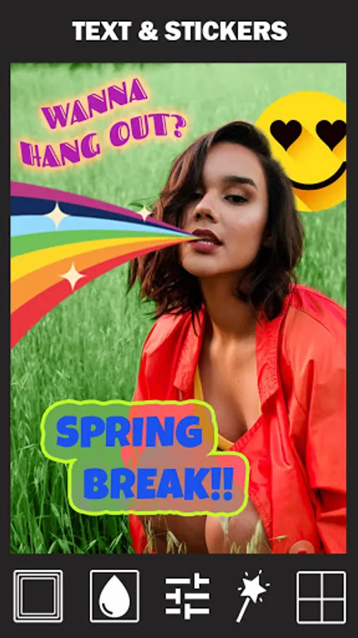 Mirror App: Magic Photo Editor also offers a diverse range of face filters to add fun and excitement to your selfies. From cute animal ears and noses with dog filter and cat filter to stylish sunglasses and quirky hats that allows you to instantly transform your appearance with a single tap. The foto mirror app provides a vast collection of photocollage stickers of emojis, symbols, animals, food, and more.