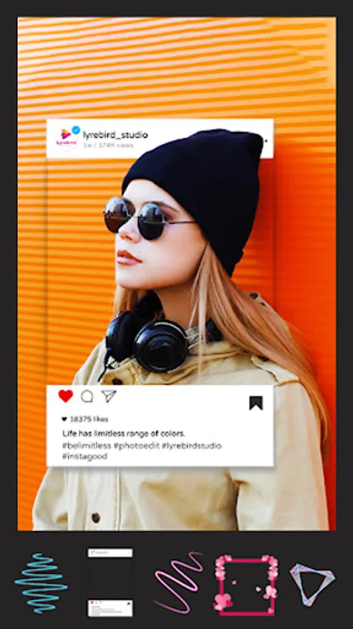 Editing picture has never been easier with the neon spirals and line art. In addition to classical neon spirals there are spirals in drip art effect, angel wings and much more. Express your love with spirals made of romantic hearts on photo.