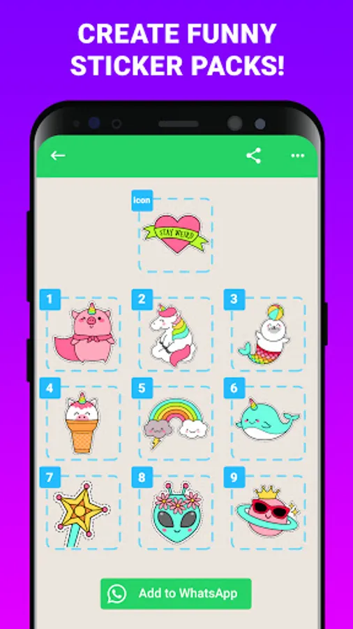 Easy to use Whatsapp Sticker maker and emoji creator! With this free Sticker Maker for Whatsapp Gif: Make Stickers, it is easy to make awesome emoji packs. Just follow a few easy steps and you will get your fascinating Whatsapp stickers! You can start by creating your own stickers. Add new wastickers whenever you want! You can enjoy with emoji maker while messaging with your friends! Add your stickers pack to your favorite texting app simply and start using the fun message stickers you made! When you open your watsaapp they are going to be ready to share! This useful meme creator is also compatible with WhatsApp Business.